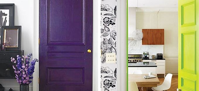 Você pode usar uma única cor vibrante ou então dois cores neutras que combinam entre si e usar o detalhe da fita adesiva na lateral da porta: