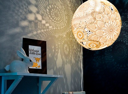 Importante: O paninho de renda que ficará no topo do balão deve ter um furinho no meio para que você possa passar o fio do soquete da lâmpada.